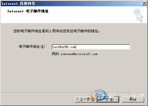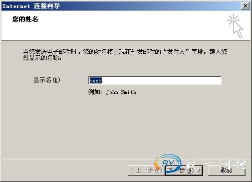 (3)如图所示,输入test用户的显示名和电子邮件地址,单击“下一步”按钮。