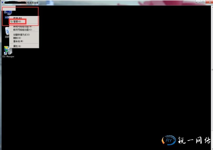 第一步:打开远程桌面我的电脑右键管理按键。