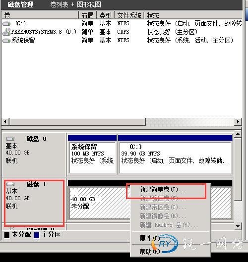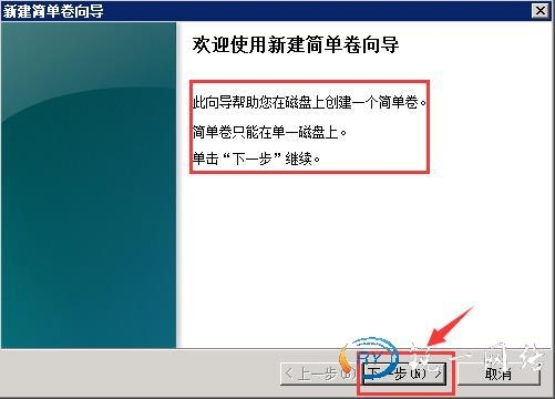 第三步:点击磁盘1右键新建简单卷进入磁盘划分向导界面,点击下一步进行磁盘划分