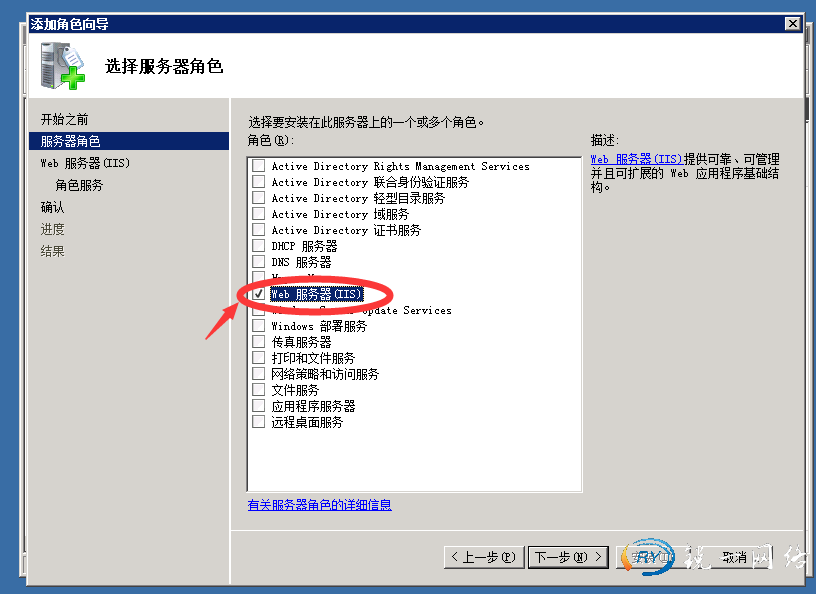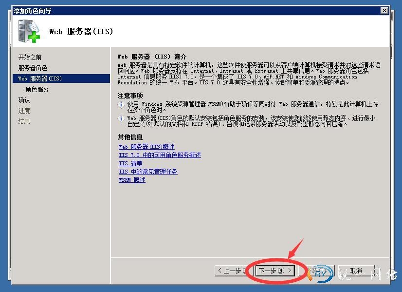 第四步:点击添加web服务器(IIS)点击下一步按钮。