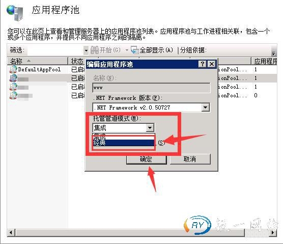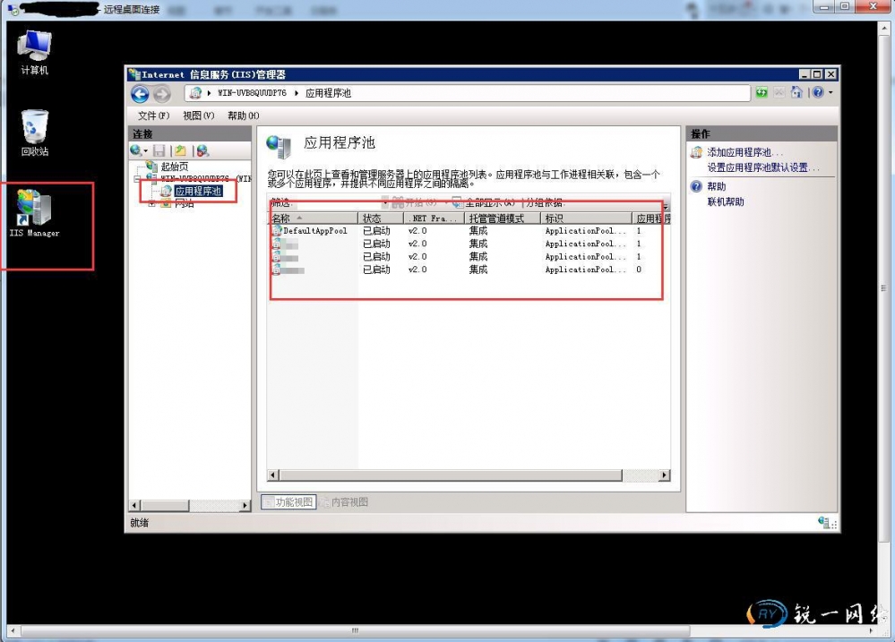 第一步:打开IIS信息服务管理界面进入应用程序池。