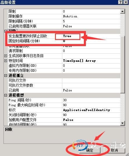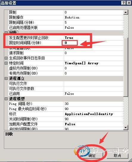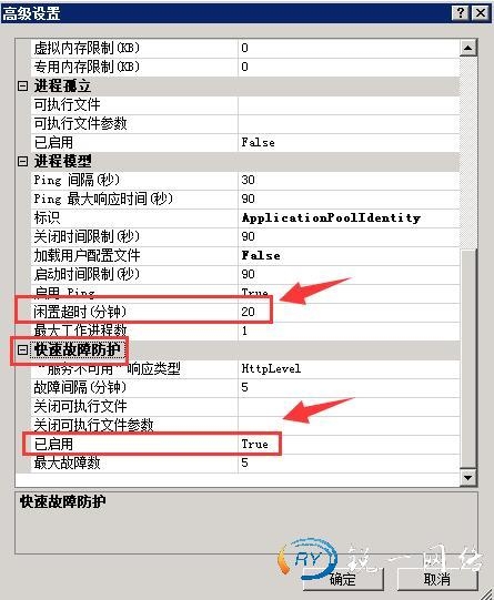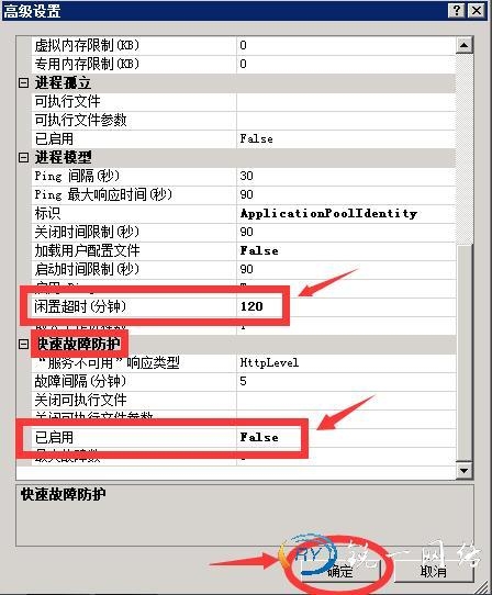 第三步:打开应用程序池的高级设置进程模式进行调整超时时长和快速故障防护