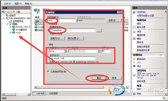 第三步:在信息服务管理器页面中的网站栏右侧点击添加网站指定文件位置到你新建立的文件夹下。