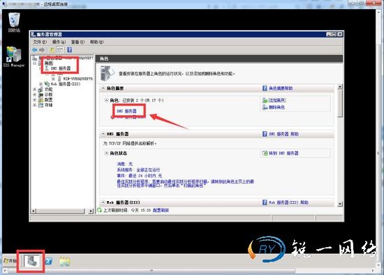 第二步:打开服务器远程桌面的服务器管理工具,点击角色找到DNS服务器点击打开。