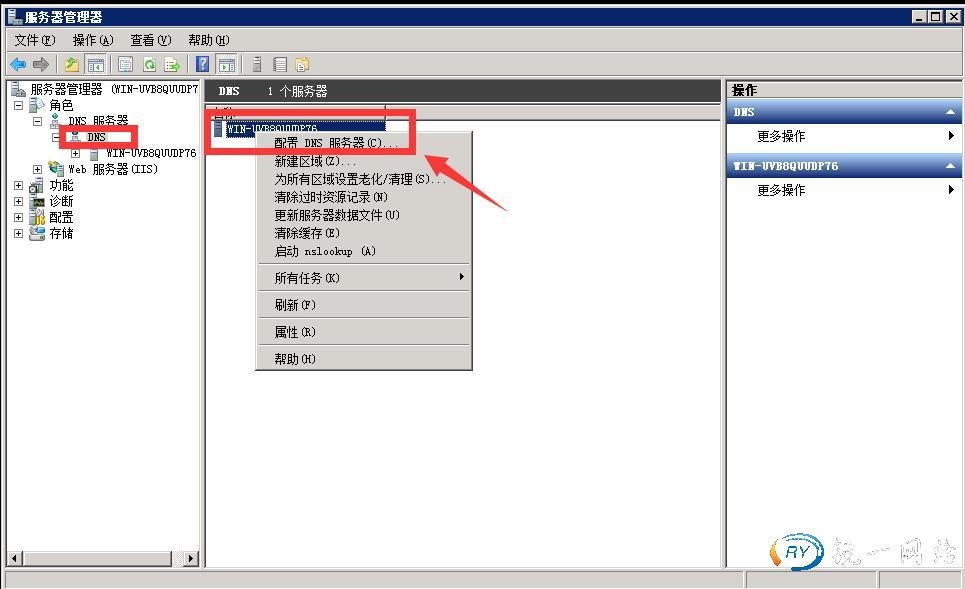 第三步:点击右键进入配置DNS服务器界面,点击下一步进行配置。