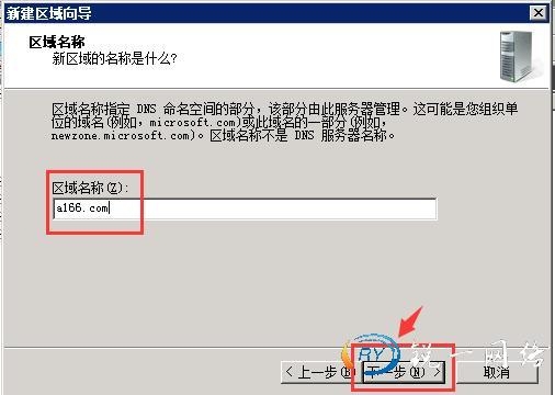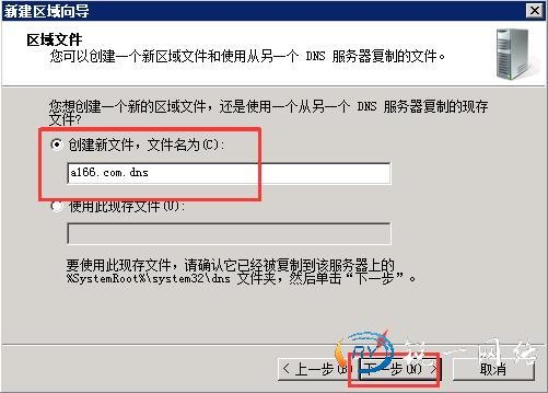 第五步:区域名称就写自己公司的域名就可以,然后区域文件默认就可以了。