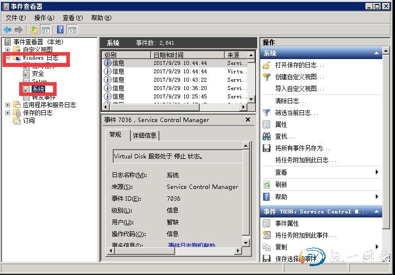 第二步:打开“Windows日志”下属文件系统栏里就可以看到事件数是多少了。