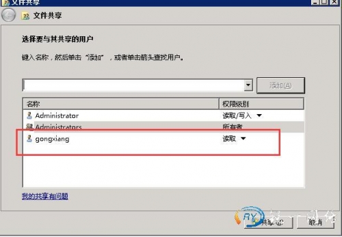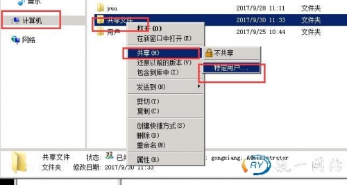 第三步:在计算机中找到要共享的文件夹点击共享特定用户然后添加你刚才在计算机管理里添加的用户默认的设定是只能读取文件。